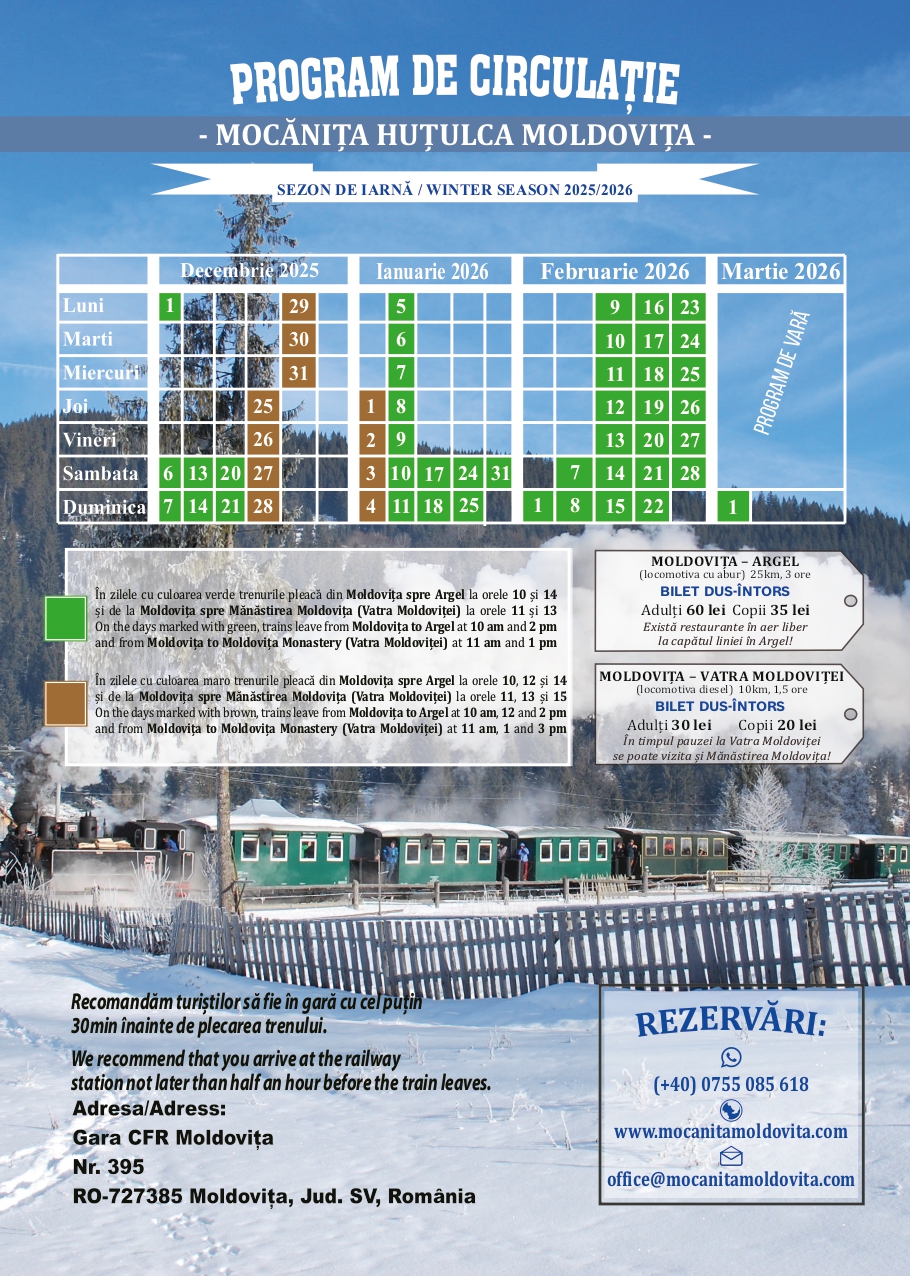 Calea ferata cu ecartament ingust de la Moldovita a fost construita de un proprietar de gater din Munchen, Louis Ortieb, si data in folosinta in anul 1888 pentru transport de masa lemnoasa de la padure la gater. In anul 1909 linia a fost preluata de la fondul bisericesc care a schimbat ecartamentul liniei de la 800mm la ecartament standardizat 760mm. Initial, traseul mocanitei avea 23,9 kilometri, de la Moldovita la Rososa, insa in decursul anilor s-a mai construit o multime de variante si tot sistemul a ajuns in anul 1987 cu infiintarea portiunii Rascovei - Rasca dreapta + Arsuri la o lungime de 73km.